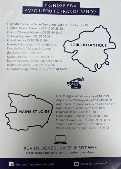 Pour obtenir des conseils sur la rénovation énergétique, les installations solaires, les éco-gestes, toutes les personnes habitant l'agglo peuvent être reçus gratuitement sur Cholet en RV en joignant au préalable le 02 41 18 01 08 ou en s'inscrivant en ligne sur alisee.espace-france-renov.fr/prendre-rdv-en-ligne.