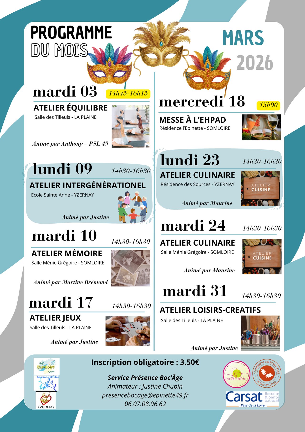 Programme des activités Présence Boc'Âge - Mars 2026