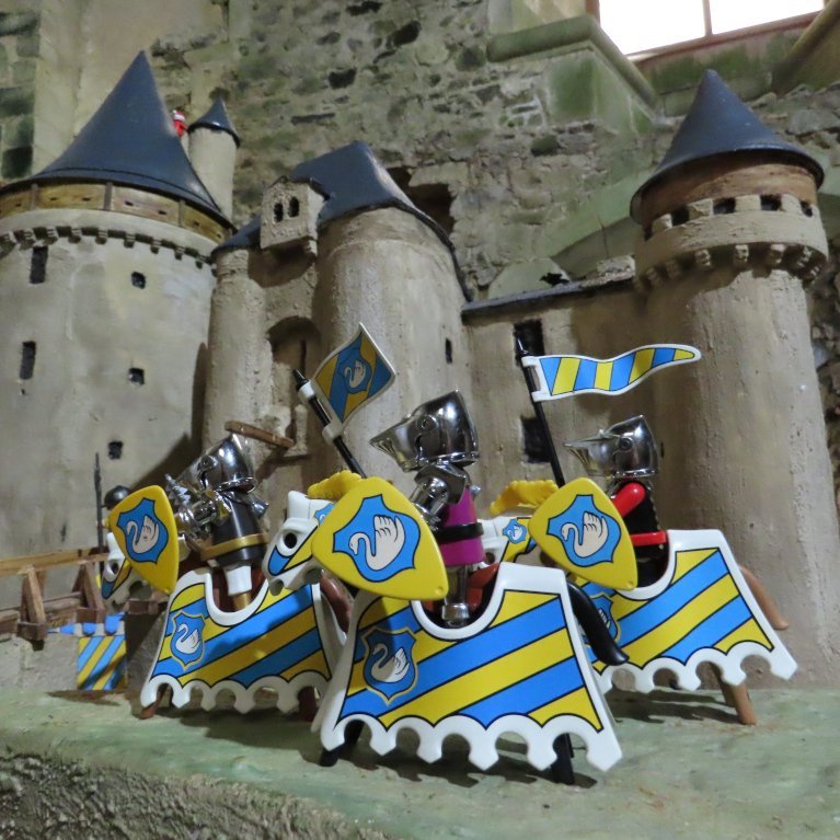 C’est sous forme de dioramas, que la forteresse va, de nouveau, et pour le plaisir de tous, se remplir de ces figurines Playmobil® légendaires revisitées. Découvrez, alors, les voyages tels qu’ils étaient perçus par les hommes et femmes du Moyen Age : Des moyens de locomotion (bateau, chariot, à pied, à cheval) aux voyageurs eux-mêmes (pélerins, marchands, militaires, ambassadeurs, étudiants, artistes, troubadours etc ;..). Les dioramas regorgeront de petites saynètes évoquant la vie au quotidien des voyageurs d’un autre temps.